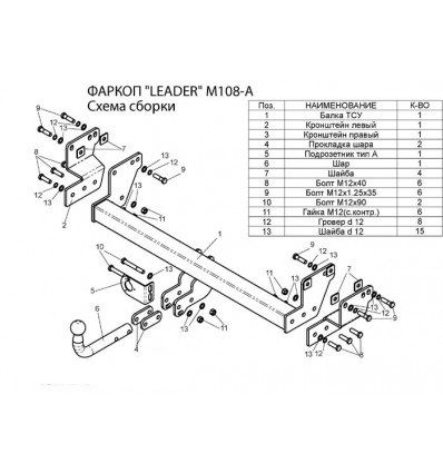 ТСУ для Mitsubishi Pajero Pinin 1999-2006 без выреза бампера. Нагрузки: 1500/75 кг, масса фаркопа 20 кг (без электрики в комплекте)