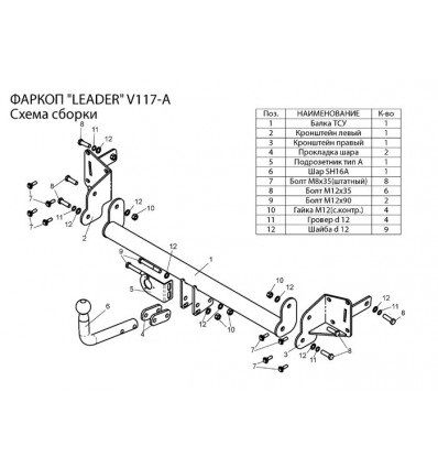 ТСУ для Volkswagen Touran 2003-2010. Необходима подрезка бампера. Нагрузки: 1500/75 кг, масса фаркопа 12,5 кг (без электрики в комплекте)